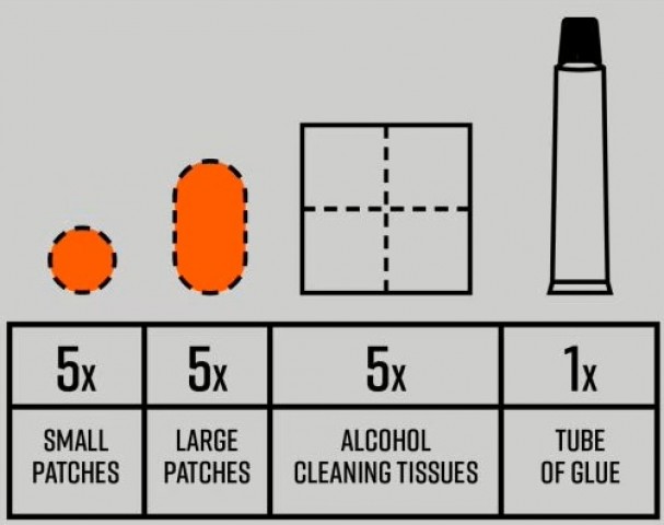 Sada Tubo-Patch-Kit pro opravu duší Tubolito. Zvýšená tepelná odolnost zajišťuje spolehlivé utěsnění i při vyšších teplotách.